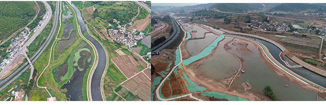 4.楚雄市龍川江西觀橋斷面水體達標工程,通過實施污染底泥疏浚、橡膠壩、生態(tài)河堤建設(shè)、生態(tài)濕地恢復(fù)等一系列水環(huán)境治理及水生態(tài)修復(fù)工程,龍川江西觀橋國控斷面已于2019年從重點整治的劣Ⅴ類國控斷面之一脫劣,提前一年達到水環(huán)境功區(qū)劃IV標準。